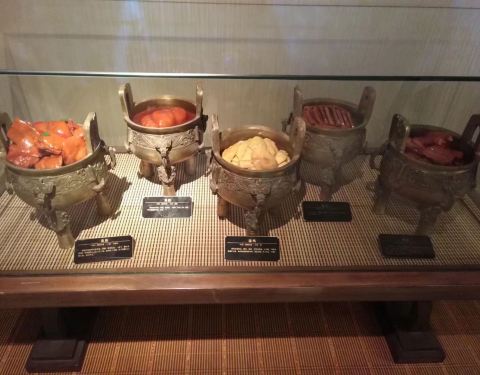 位置虽然稍显偏僻,但实地游览一番后,这点劳顿也就不值一提了。 该博物馆比较另类,或者说专业性更强,较为详细的介绍了御膳,这一特殊菜品体系的发展历程,从中也可窥测到食物自身与社会的交融及影响,馆中不同朝代的布置也较为考究,菜品模型逼真,配以详细说明,让人一目了然。 作为一家饭店的配套设施,能用心至此,实应比心!
