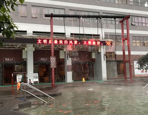 下午开始就是在四季水城玩,这里是在山上,所以天气阴晴不定到了极点,整个下午基本...因为下雨,第一天晚上基本就在吃烤羊、撸烤串、喝啤酒中度过了。第二天早上起来吃了个早饭,散了会步,闲着没事就去泡温泉了。