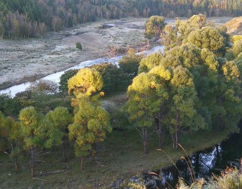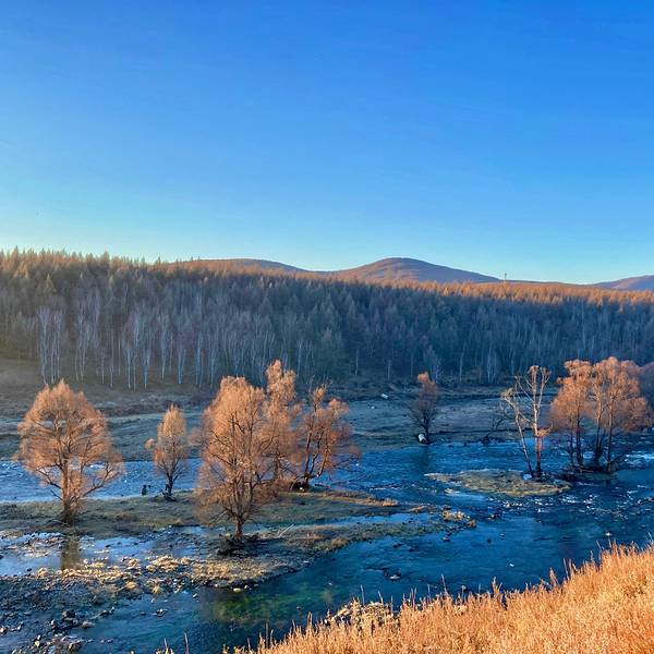不冻河从三潭峡到金江沟林场附近长约20公里,紧邻天池服务区,由于景区没有景交车直达,所以这里的游客非常少。河水冬季不结冰,畅流自然。在零下30℃的隆冬时节,滴水成冰,市境内所有大河小溪皆封冻,唯有此段河水热气腾腾,流水淙淙。三九严寒,该河段水中还长着青青的水草,河面上仍然雾气升腾,透着朝阳的余辉,流光溢彩,宛如五彩云霞,蔚为壮观,去年冬天有幸能见到那般的风光。如今来到这里,又是不一样的风景,同样的是依旧美丽。不冻河的秋天,没有冬天美的那般震撼,却有着独属于秋天那份闲适淡然。不冻河的另一边,牛马成群,享用着这最后的新鲜食材。一阵秋风吹过,山坡的白桦林树叶沙沙作响,一匹骏马小心的趟着过河,头上的鬃毛迎风飘动······ 展开