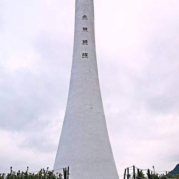 ...7公里处,地属花莲县丰滨乡,纪念碑建在环岛公路边一片空旷的田野上,高约20米,为一塔型石碑建筑北回归线(Tropic of Cancer),是太阳在北半球能够直射到的离赤道最远的位置,是一条纬线。也就是地球绕太阳公转所绕成平面与地球赤道面所成的最大角度,也是黄赤交角的角度。
