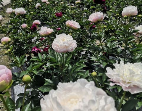 芍药花的品种挺多的,但不少花还没开放,显得稀落,花要成片成片的好看芍药花的品种挺多的,但不少花还没开放,显得稀落,花要成片成片的好看。五一期间去的,阳光灿烂啊晒得慌,人和花都要焉了