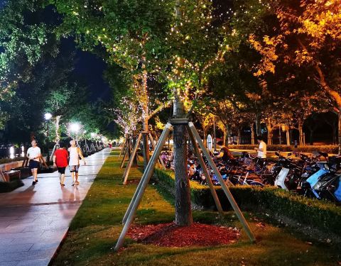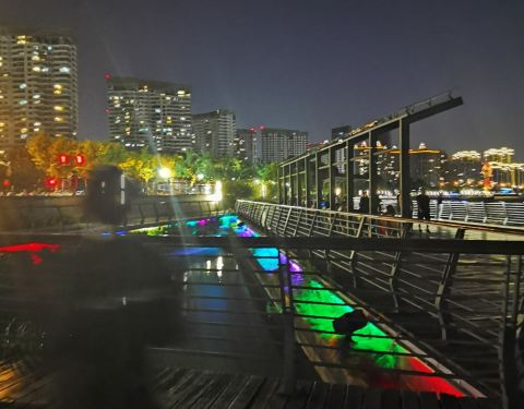 ...者与朋友聊天,散步,岁月静好,五颜六色的灯光照得一片欣欣向荣的景象,老百姓的生活是越来越美好了晚上的西岸滨江人人都在散步,锻炼身体,或者与朋友聊天,散步,岁月静好,五颜六色的灯光照得一片欣欣向荣的景象,老百姓的生活是越来越美好了。