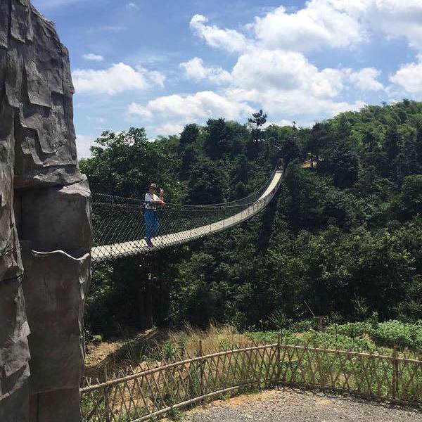 上山路蜿蜒,乘坐景区另付20元/人的游览车还是必须的上山路蜿蜒,乘坐景区另付20元/人的游览车还是必须的!到达千丈岩内部景区,沿着丛林穿越的指示牌上山,鸡啊、鸭啊、野猪啊,有散养也有圈养,是供给去人民公社农家乐里吃饭的自给自足的正宗的土特产!接着就是进...上山路蜿蜒,乘坐景区另付20元/人的游览车还是必须的!到达千丈岩内部景区,沿着丛林穿越的指示牌上山,鸡啊、鸭啊、野猪啊,有散养也有圈养,是供给去人民公社农家乐里吃饭的自给自足的正宗的土特产!接着就是进入险象丛生的丛林穿越的拓展道路,再是滑索(40元/人),然后是吊桥和极具挑战的玻璃栈道,胆小的还是绕道走另一条平稳的山路了!总体来说该景点还是比较适合喜欢挑战自己极限的游客的! 展开