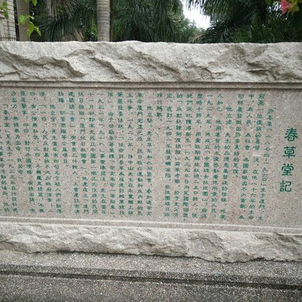 建筑选花岗岩作墙基、墙基和廊柱,加以清水红砖勾缝,自然粗犷厚实,有闽南建筑天然美感春草堂建于1933年,临崖而筑,外观似西式养楼,客厅外为宽廊,可观景、纳凉。建筑选花岗岩作墙基、墙基和廊柱,加以清水红砖勾缝,自然粗犷厚实,有闽南建筑天然美感!