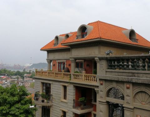 春草堂的特点就是它的墙面了,未打磨抛光的花岗岩直接做墙基,墙柱,粗狂无比,在鼓浪屿也是独树一帜了,临崖壁而建,同样可以和观彩楼一样同样可以观赏落日彩霞,但却输在后方视野,无法俯瞰八卦楼了,毕竟它不是最高点。