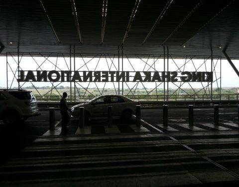 公共交通可选择机场班车或出租车,它们配有专门的上下客区域,紧邻国际到达区航站楼入口。