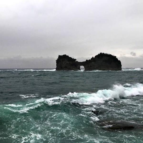 圆月岛是南纪白滨的标注性景色,邻海的小岛中间有一个海水侵蚀形成的圆形的洞,因此被叫做圆月岛,夕阳西沉的时候光线从这里照过来格外美丽。