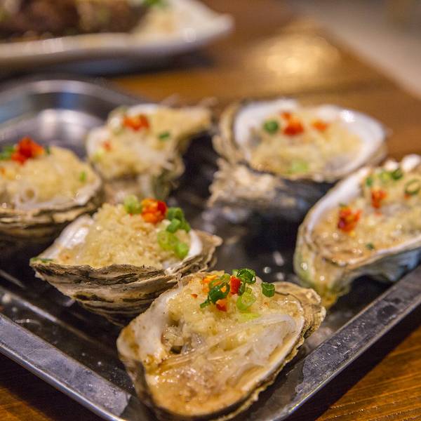 我:别那么没文化,书店在里面呢!来的时候,朋友告诉我,这里是可以拍照的,于是我带着单反咔咔咔,却被店员告知这里不能拍照,后来我们分析,可能是我的相机太大了,太显眼,所以。。。再被告知后,我只能小心翼翼地拍了,这里有写关于成都的书,老城都的故事,来了还是值得买一本收藏的。突然看到有中国南京的字样,感觉异常亲切,在南京,我逛遍了所有的先锋书店,但最喜欢的还是我们学校后门的五台山总店,有些地方,无关痛痒,就是会令你念念不忘,可能是那里有我们再也回不去的青春吧。趁着没人,拍了两张照,总算也是来打过卡了。在负一楼除了书店,两旁的店铺也值得逛逛,各种家具用品,看着都很心水。总之,想把太古里整个逛完一天显然是不够的,所以必须找准几个目标,或者多来几次。可能是逛饿了,我们都想去吃夜宵,然后在网上找了家烧烤店,打车过去也不远,嗯,就它了。为啥吃烧烤,原因很简单,我们来了这么多天还没吃过烧烤,这家醉疯烧是我们无意翻点评看到的,一评价还不错,在金辉路上,人均消费才几十,宵夜很合适。店内干净卫生,环境还不错,我们点了几个爱吃的,坐等美食上桌。速度还是可以的,没一会烧烤就上桌了,盛烤串的容器相当特别,很有心意,来上几串,嗯,味道还真不错呢。蔬菜烤的也不错,看卖相就知道了,我原本不爱吃鱼,店员推荐了他们家的烤鱼,虽说有点辣,但还真的苏酥脆脆,没一会就被消灭了。烧烤怎么也不能少了生蚝,这里特别有喝酒撸串的感觉,在夏天的夜晚,喝点啤酒,与三五好友聚个会,真是舒爽极了。