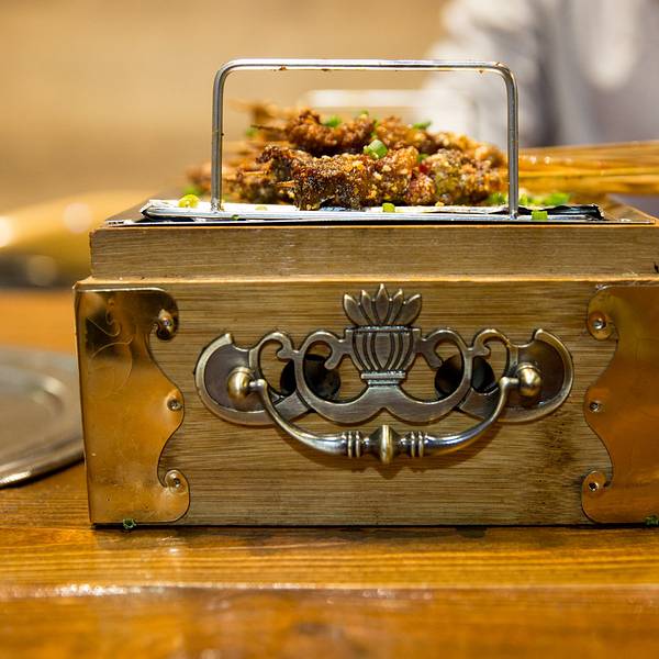 - 速度还是可以的,没一会烧烤就上桌了,盛烤串的容器相当特别,很有心意,来上几串,嗯,味道还真不错呢实用