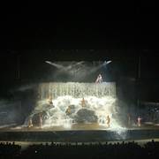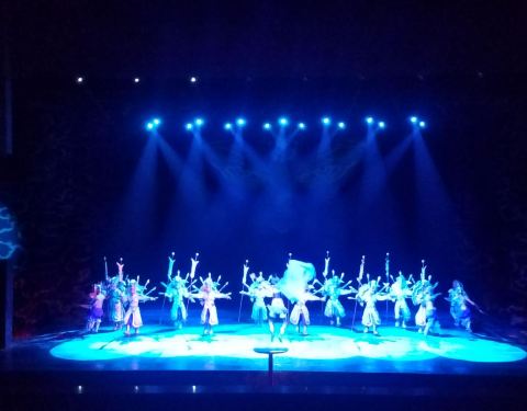 舞台灯光、舞美、舞台设计变换、空间感、特别是对水的运用效果很棒,演员表演服装很精美,以舞蹈、芭...舞台剧《金面王朝》演出剧场在欢乐谷大门北侧,我们是买了欢乐谷日票,从欢乐谷里买票,5折优惠,A区票60元,演出时间17点30分。演出剧场很大,目测2000人的场子,演员阵容强大,出场演员应该在近百名上下。开演...舞台剧《金面王朝》演出剧场在欢乐谷大门北侧,我们是买了欢乐谷日票,从欢乐谷里买票,5折优惠,A区票60元,演出时间17点30分。演出剧场很大,目测2000人的场子,演员阵容强大,出场演员应该在近百名上下。开演前大屏显示已经演出近4500场(忘了拍照)。舞台灯光、舞美、舞台设计变换、空间感、特别是对水的运用效果很棒,演员表演服装很精美,以舞蹈、芭蕾、杂技为主,中西合璧。欢乐谷玩累了,休息加欣赏,票价超值,五星推荐。 展开