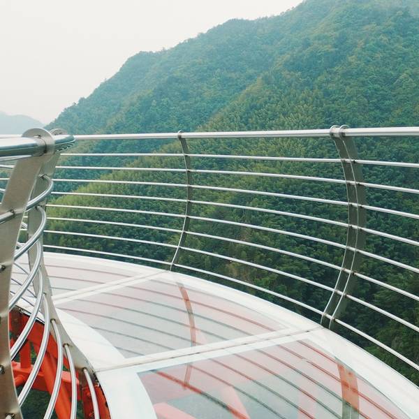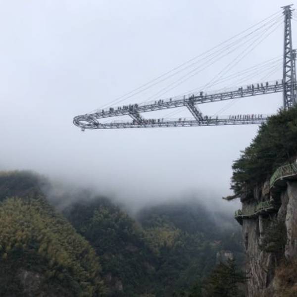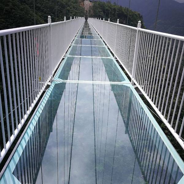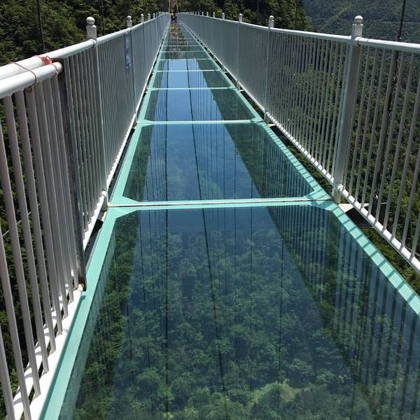 玻璃桥会晃动,但是比较安全,悬挑玻璃平台挺壮观的