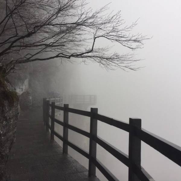 可惜我们走栈道那段时间山上大雾,无惊无险无风光。因该栈道建于绝壁之上,故称之为绝壁长廊,或绝壁栈道绝壁栈道位于山体东侧的直立悬崖绝壁山腰,海拔约1700余米,与山岩绝壁融于一体。因该栈道建于绝壁之上,故称之为绝壁长廊,或绝壁栈道。可惜我们走栈道那段时间山上大雾,无惊无险无风光。