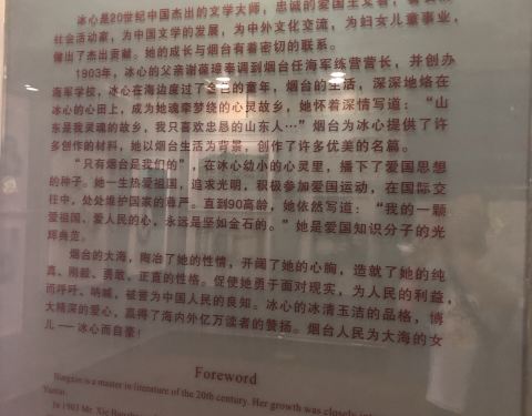 里边有冰心的生辰,成长经历,所做的事情。去的当天正好是10月5号,冰心的生日,还默默的祝福了一代文豪,并希望自己也可以沾染一丝灵气。