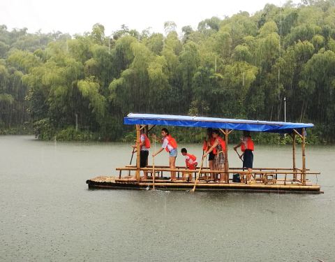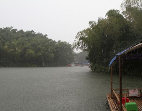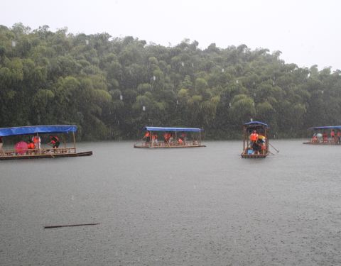 只能在竹筏上泡茶休息。漂流的机会来了,雨后的漂流正合适。还好,大约半小时之后,雨过天晴,阳光出来了
