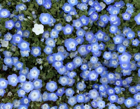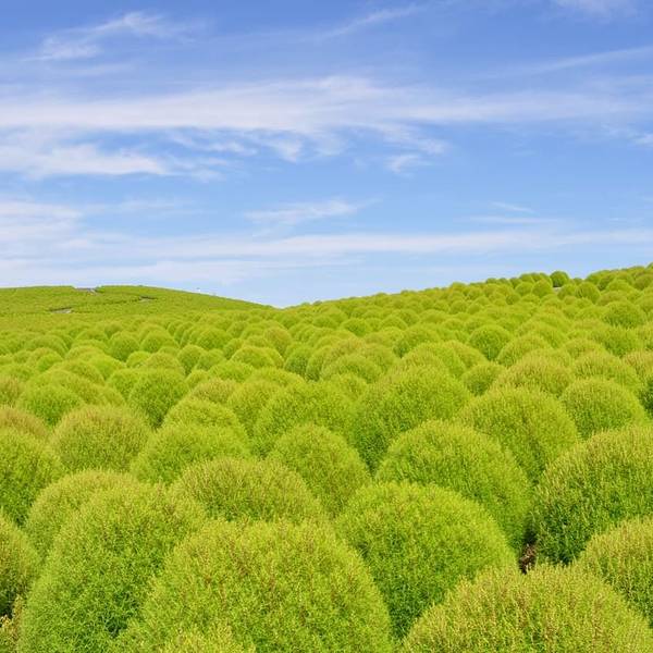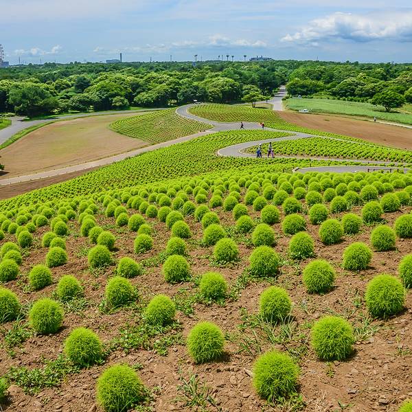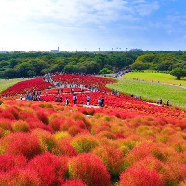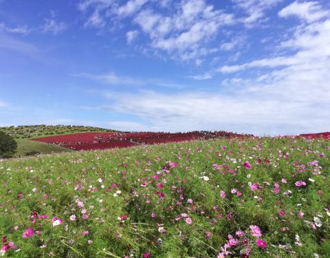 公园门票410日元,每周一休园,从东京出发有直达巴士,大概2个多小时的车程,景区入口有免费的婴儿车和轮椅,还是非常人性化的。百度百科上介绍说有3.5公顷,其实是350公顷,步行的话可能一天也逛不完,骑车可能是不错的选择,园内修建了自行车专用路线,租车在3小时内只需400日元/人,每半个小时多50日元。还有观光小火车,一天的有效期,500日元,如果嫌视野不够开阔,还有花公主号摩天轮,可以远眺。公园有着长长的海岸线,不远处就是太平洋。许是因为面积太大,这里游人并不是很多,还十分安静,蓝天白云鲜花,在这里有种错觉,你好像穿越到电脑桌面内总而言之,非常值得一去。图上方的红地肤,一眼看去是不是有种婚礼现场的喜庆感。绿色的地肤,远远看去像是一簇簇的松鼠尾巴。蓝色的门氏喜林草ネモフィラ,还有个很可爱的英文名叫做baby blue eyes,感觉比薰衣草还漂亮 。
