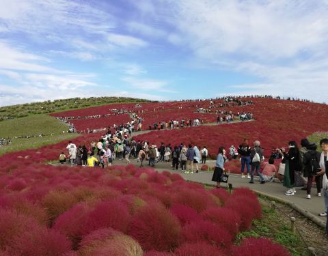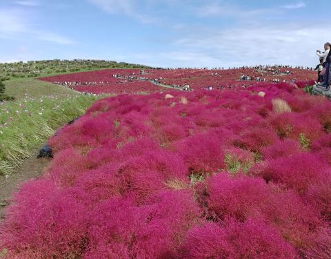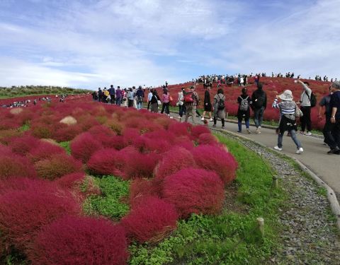 ...帚草染成红色,而且虽然扫帚草被台风吹倒了些,不过这里确实还是游客如织,特色コキア冰淇淋味道不错每年十月中旬,海滨公园的上坡就被一株株扫帚草染成红色,而且虽然扫帚草被台风吹倒了些,不过这里确实还是游客如织,特色コキア冰淇淋味道不错