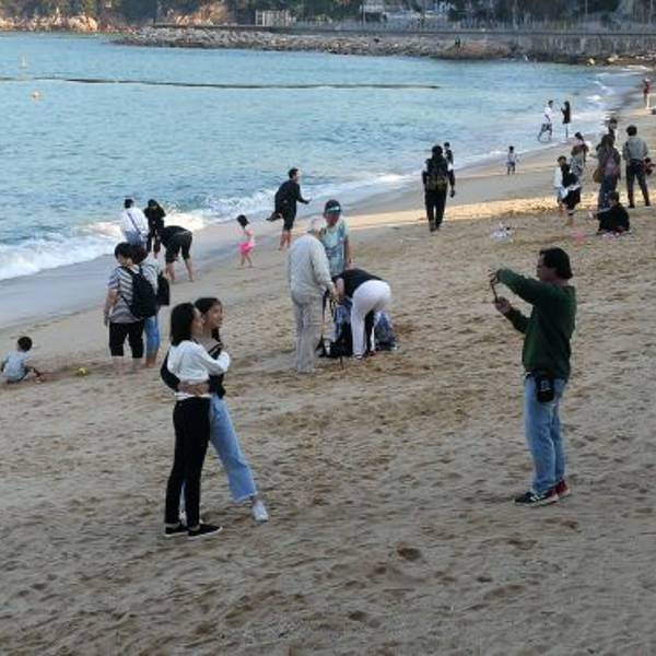 在中环码头乘坐摆渡船来到长洲岛,上岸后沿东湾路来到东岸,在东堤路东面约八百米狭长的海岸都是东湾泳滩。站在东堤路,往东可以远远望见南丫岛。 无论是日出日落,这里的人流一直络绎不绝,欣赏海景的,吹吹海风的,下海游泳的,在泳滩面前都把一切烦恼抛到九霄云外,尽情投入到大自然的怀抱之中。