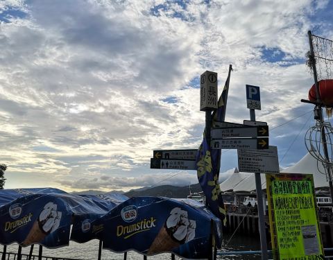 在中环码头乘坐摆渡船来到长洲岛,上岸后沿东湾路来到东岸,在东堤路东面约八百米狭长的海岸都是东湾泳滩