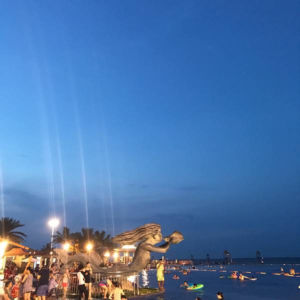 碧海银沙夜场表演晚上有歌舞表演,点燃篝火,海上烟火,人很多,很热闹,都包含在门票里。 2018-06-03 10:48