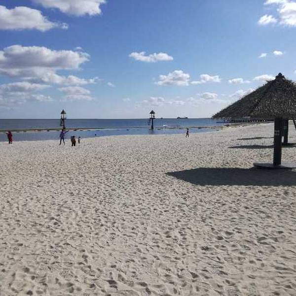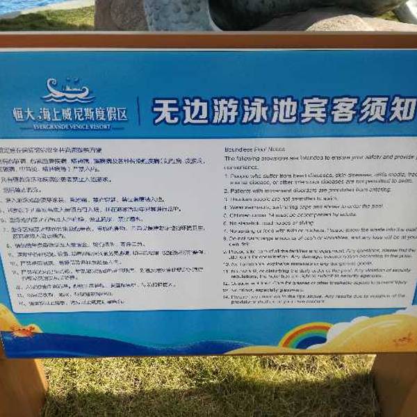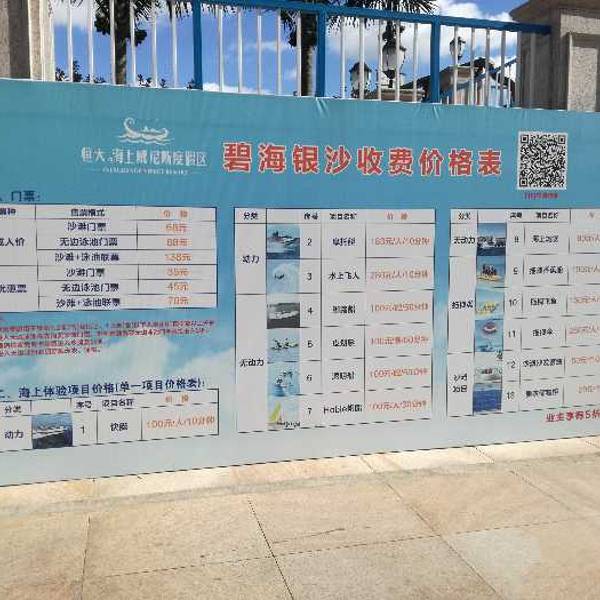 沙子还算干净,入住恒大威尼斯酒店免费进无边入游泳池游玩,其他都去买票。