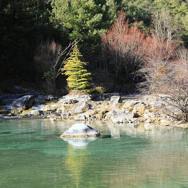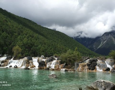蓝月谷中的河水在流淌过程中因受山体阻挡,形成了四个较大的水面,人称“玉液”湖、“镜潭”湖、“蓝月”湖和“听涛”湖。不要乘坐观光车,一路沿湖水下行感受每一处的美妙,听涛湖位于最后一段,我想是因为这里的一段小瀑布形成的波涛声响而得名吧。其实无论叫什么名字,这里醉人的美都是令人终身难忘的!