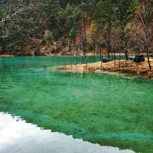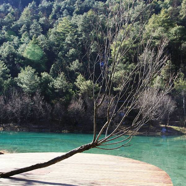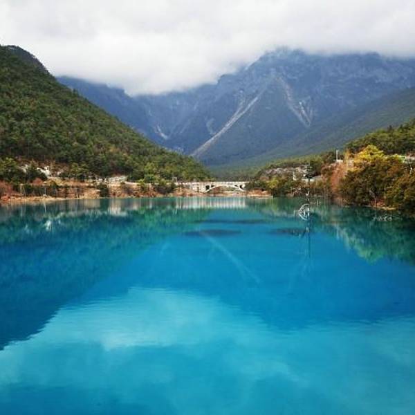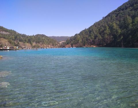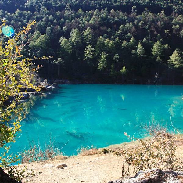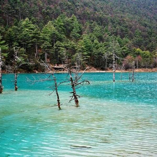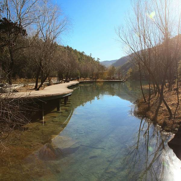 水源来自 玉龙雪山 冰川公园 冰雪融化之后。蓝月谷湖里的水冰凉 蓝月谷的水里面有“铜离子”不能饮用