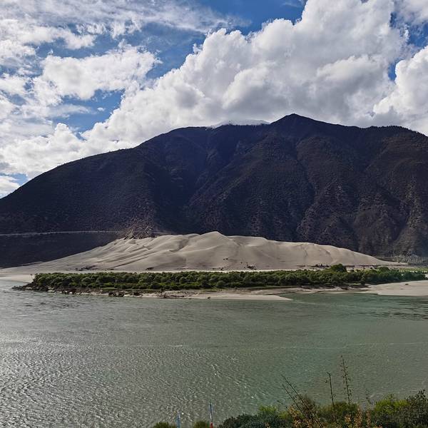 这里真是个神奇的地方,忽而田园般宁静,忽而狂风大作飞沙走石,这些无处安放的沙子在这里聚拢形成了...往返雅鲁藏布江的必经之地有一处诡异的沙丘,隔着大江可以一览无遗。这里真是个神奇的地方,忽而田园般宁静,忽而狂风大作飞沙走石,这些无处安放的沙子在这里聚拢形成了一道靓丽的风景。
