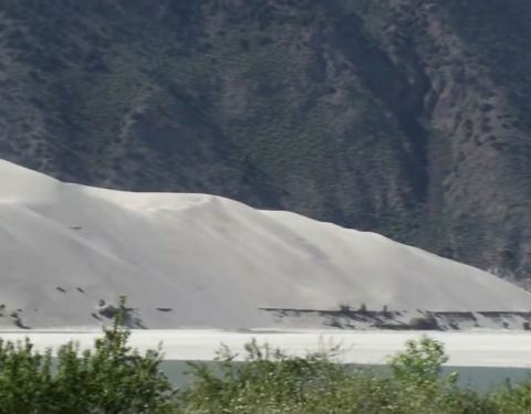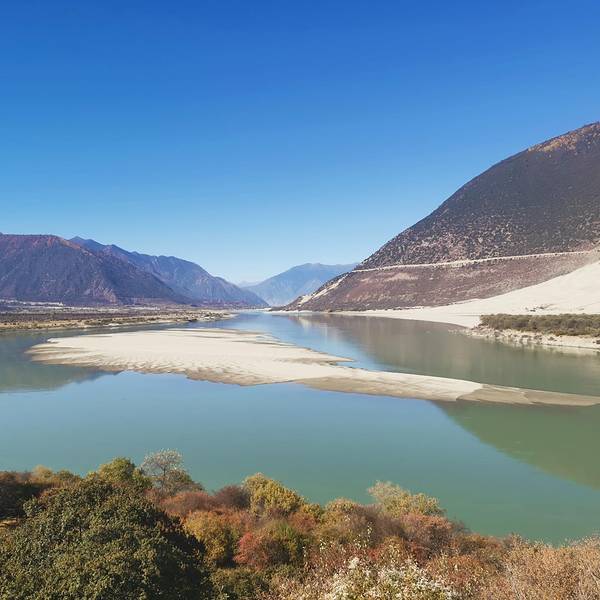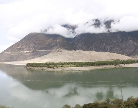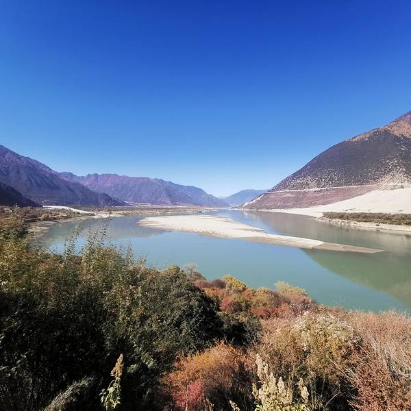 在合适的角度和光线下,沙丘和它在江水中的倒...该沙丘位于雅鲁藏布江中下游强风口地段,秋末至春末期间劲风如飓,该沙丘前后河床上因枯水期而露头的河沙,经年复一年地吹送搬运并堆积,便形成了这一特兀的地貌景观