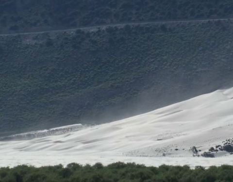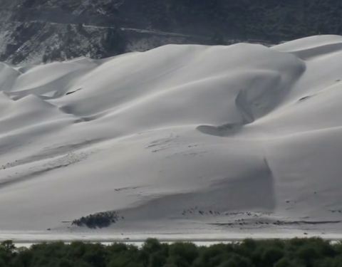 秋末至春末期间劲风如飓,该沙丘前后河床上因枯水期而露头的河沙,经年复一年地吹送搬运并堆积,便形...该沙丘位于雅鲁藏布江中下游强风口地段,秋末至春末期间劲风如飓,该沙丘前后河床上因枯水期而露头的河沙,经年复一年地吹送搬运并堆积,便形成了这一特兀的地貌景观