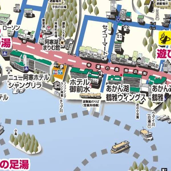 阿寒湖温泉位于北海道釧路市的阿寒湖畔,由于有一条小街组成,所以也被人们称为“阿寒湖温泉街”。
