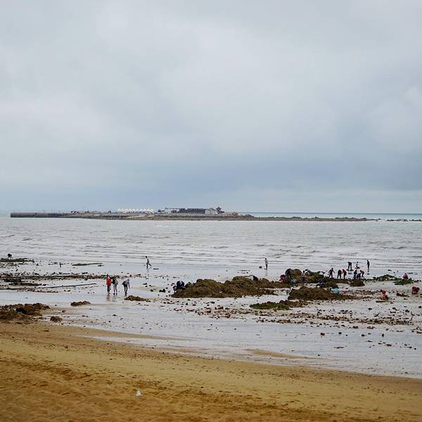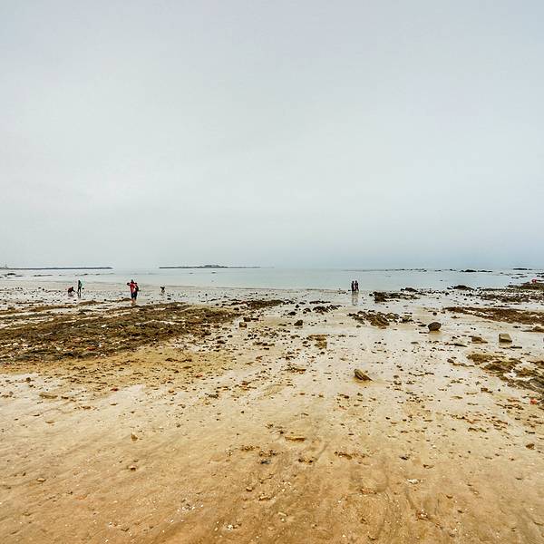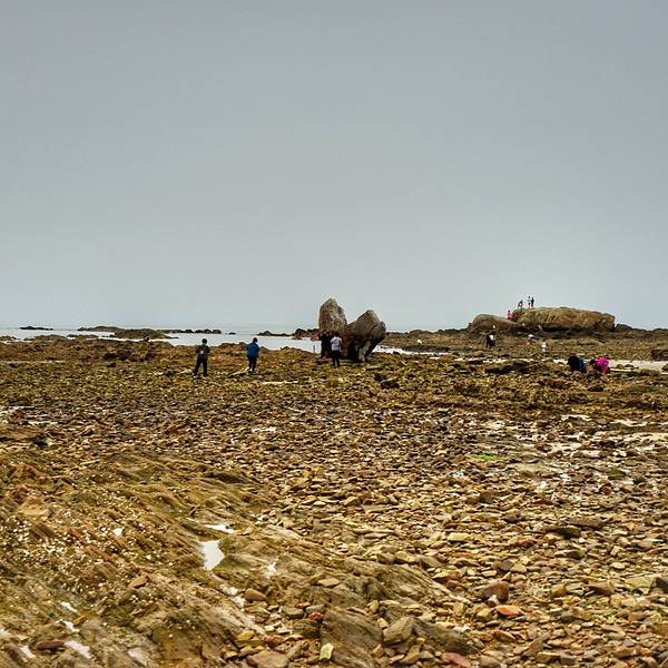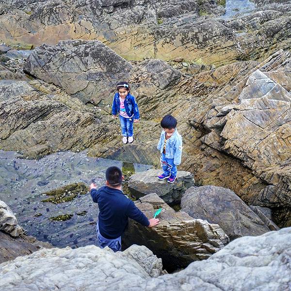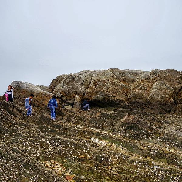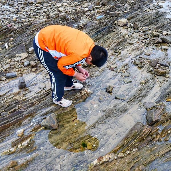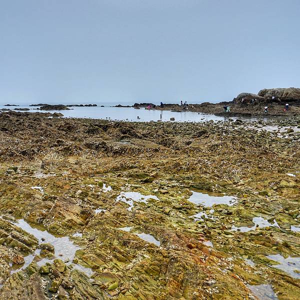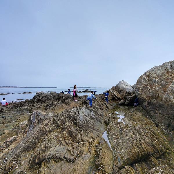 从李家台礁石公园再往南不到2公里,就是张家台礁石公园,中间隔着桃花岛。 张家台礁石公园面积就更小了,只有李家台礁石公园的一半, 但因为这里也紧邻海边的碧海路,比李家台更靠近市区,旁边还有张家台渔港, 所以这里退潮以后来赶海的游客也不少。张家台礁石公园所处的地势特殊,这里是一个拐角,所以两面临海, 这里的礁石滩共分成两片,东片礁石区域面积小,只有0.42公顷; 东南片礁石区域面积很大,总面积有3.53公顷。 我们来的这块是张家台礁石公园的东片礁石区,所以看着面积比较小。 虽然面积不大,但是这里的礁石造型奇特,景色也还是很漂亮的。我觉得来赶海孩子玩的要比大人开心多了,孩子不会计较得失,主要就是新鲜。 所以无论捡到什么小鱼、小虾、小螃蟹,只要是活的,都会高兴半天。 但是带孩子来礁石滩赶海一定要注意安全, 礁石区虽然比沙滩上好玩,捡的东西多,还可以抓到比较大的螃蟹,但是特别危险。 礁石上面附着了很多牡蛎壳,特别锋利, 上面的海草也特别湿滑,孩子无论大小都不太安全。 所以带孩子玩的大人千万不要走得太远,一定要看好孩子。这些礁石看着不起眼,但是都7亿多岁了, 由深层岩浆侵入、冷凝、结晶后,经多年的构造运动、风化作用及海水侵蚀而成。 人类和它们比起来,真是犹如过眼云烟, 它们才是真正经历了海枯石烂、地老天荒。 就算人类灭亡之后,它们也会一直存在下去, 不知道它们是否还会记得,我们曾经来过。好啦,这次的日照之行结束了。买了下午17:05回程的火车。 K52次,第二天早上05:20到北京站,一点都不耽误上班。 从张家台礁石公园去火车站10公里多点,打车20多块钱。 再见了日照,这次尝试了很多与众不同的玩法,希望大家能看到一个与众不同的日照。 其实我只是想让你知道,不一定要走平常路,打开日照还有别的很多方式。 希望我只是抛砖引玉,你能发现属于自己的玩法。 也许这样,才算是真正找到了旅行的乐趣吧。