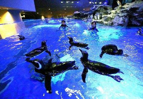 欣赏重现小笠原海域的大水槽,近距离观看大水缸里的企鹅、海狗。