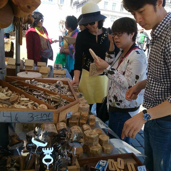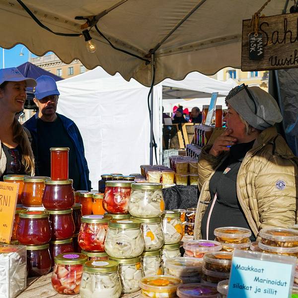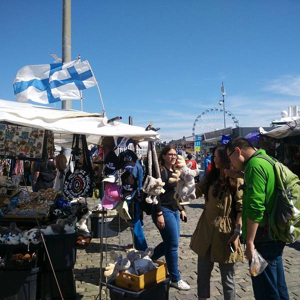 Etelaesplanadi大街走到尽头是一个小广场,广场上是波罗的海的女儿的雕像,而热闹的对面就是赫尔辛基最大的露天市场,有海鲜,有水果和各种手工艺品。在水果摊驻足停留的片刻,一位穿着考究的赫尔辛基大爷还教我...