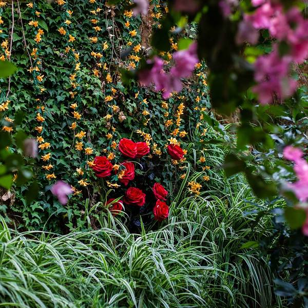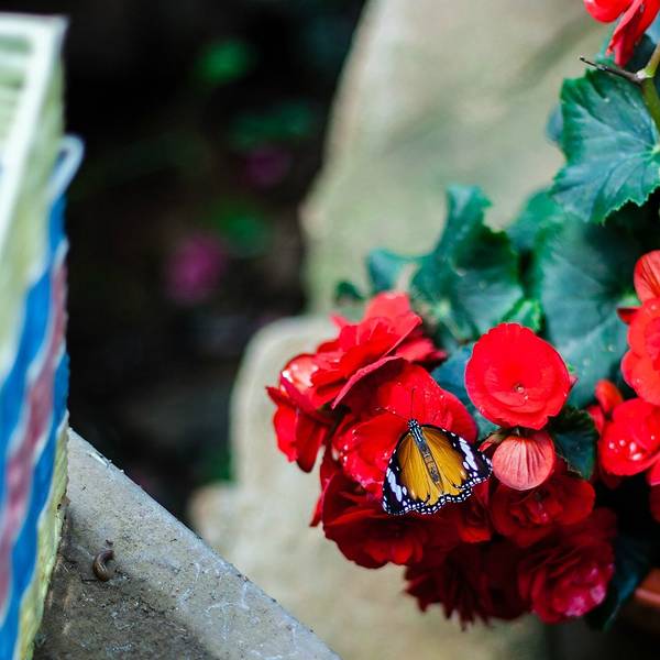 沂水蝴蝶谷,是哪只蝴蝶飞过童年飞向永远… 走近蝴蝶谷,脚步却不由的踟蹰,我是要加快脚步,还是和他们三三两两的进入。生怕惊飞了花瓣的蝴蝶,惊散了我畅想的梦境… 眼前,鲜花如醉迷人眼,花香飘逸沁心田。 我看不清是花海浸染了蝴蝶,还是蝴蝶点缀了花海…那一片静默的绿无言地托着那朵绚烂的红,格外娇艳,引来蝴蝶翩翩。 墙头的绿叶枝头的花,这是童年梦境还是蝴蝶的家?