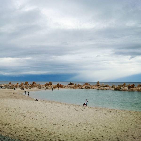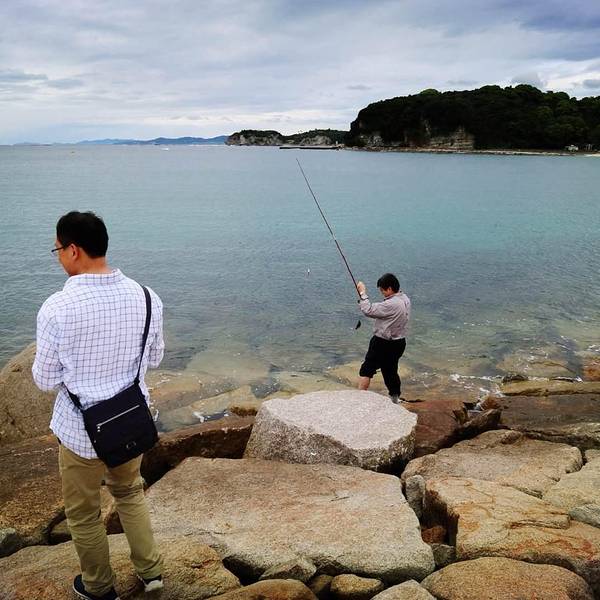 海边大片暗礁岩石把海水有意地分割成内海和外海,爬上那片岩石,顿时豁然开阔,太平洋日本海的美景尽收眼底到了海滨城市,则一定要去沙滩走一走的。继续坐公交,白滨也不大,几站后到达了白良滨,一路上也没见几个人,整个城市给人以宁静祥和的感受。