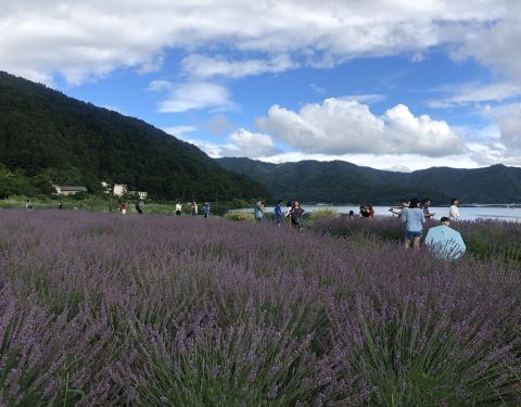 河口湖自然生活馆就在大石公园边上,里面就是卖一些类似旅游纪念品的,我们更喜欢外面的景色,虽然没有看到富士山,但是看到美丽的薰衣草,也很开心。