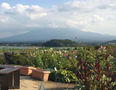 巴士最后一站,就是个大花园,可以隔着湖远观富士山,完美的三角锥形,很神奇。花园的花品类繁多,争奇斗艳的,逛一逛很享受。上下车的地方是商店,卖冰淇淋和纪念品的。