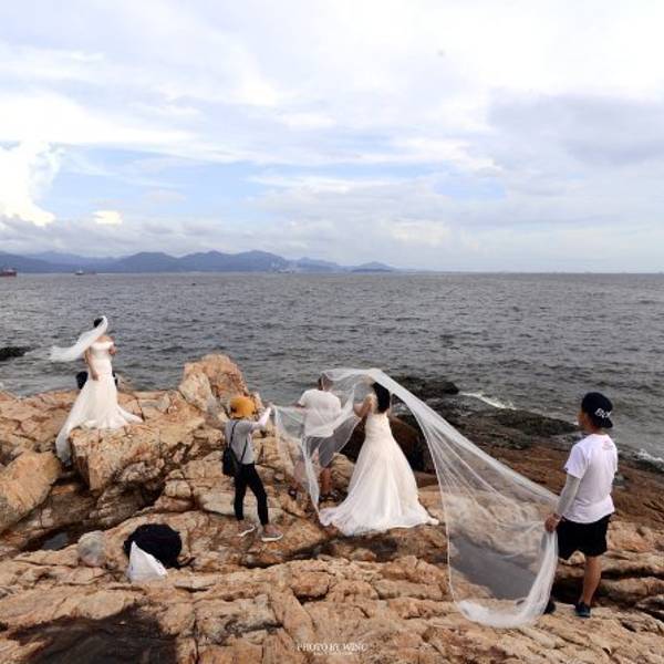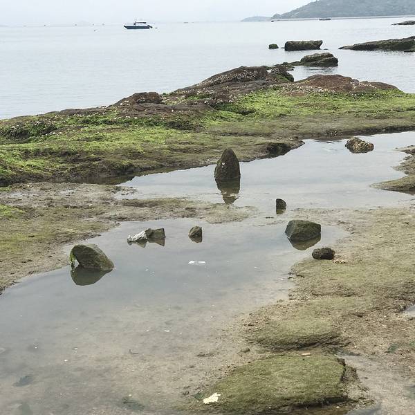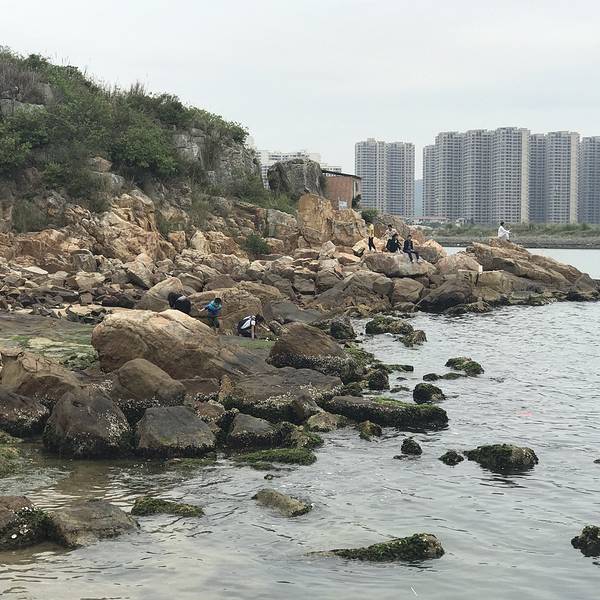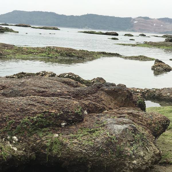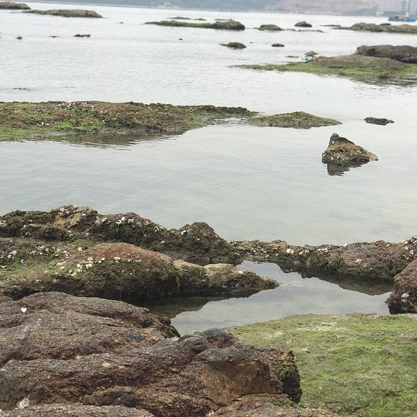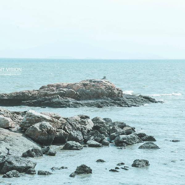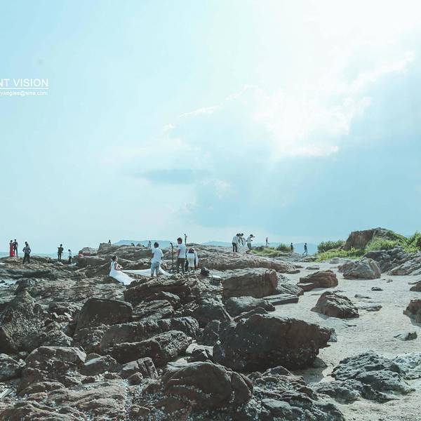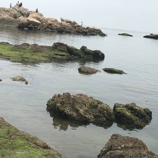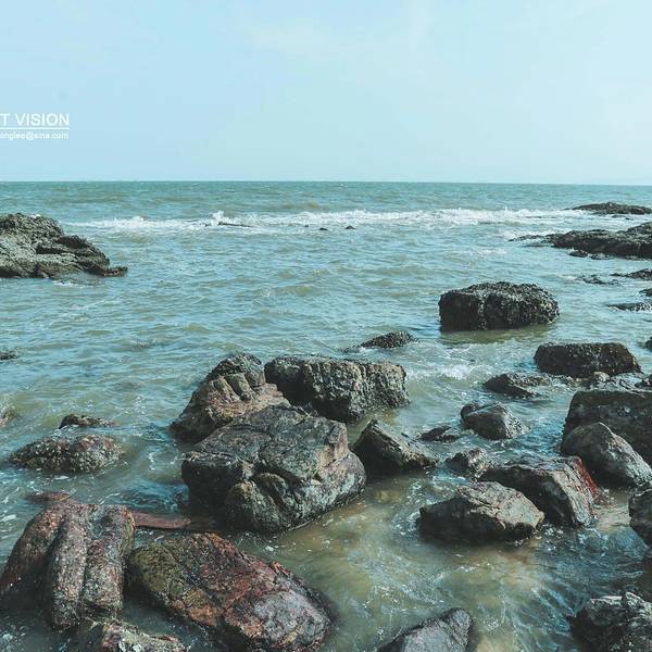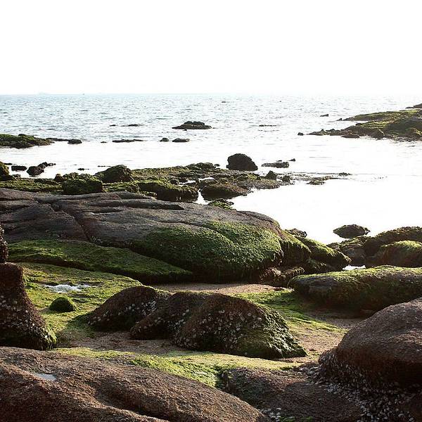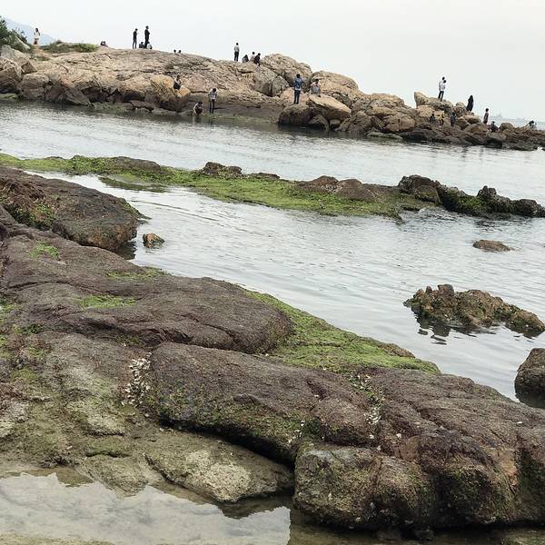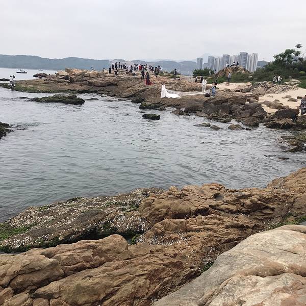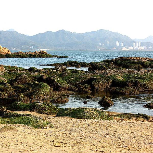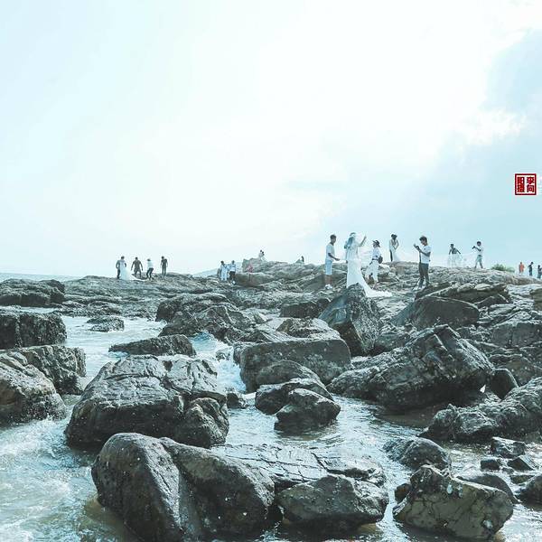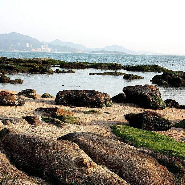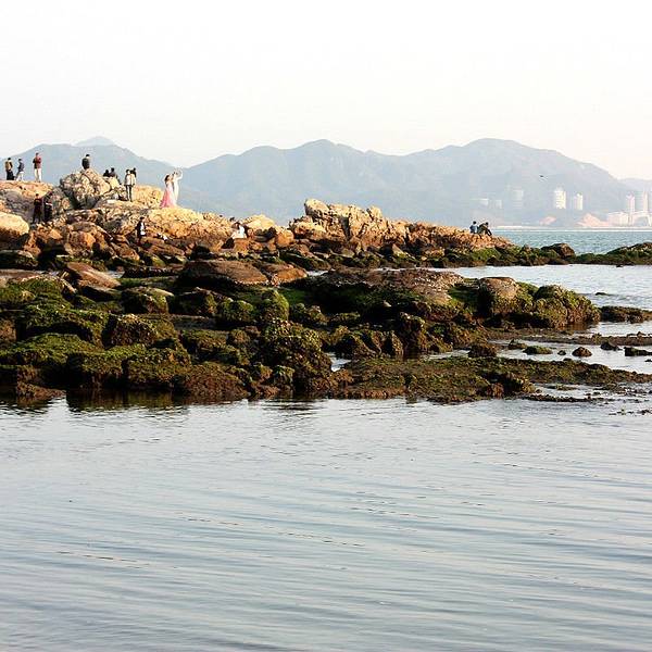礁石公园内形态不一的礁石,状似群虎,有的雄踞在晶莹的沙滩里,有的在巨浪拍击的海岸上淋浴,有的在阳光下酣睡。