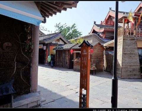 不需要门票,有两条岔路古街,都是卖东西的,中间进去有湖有桥。