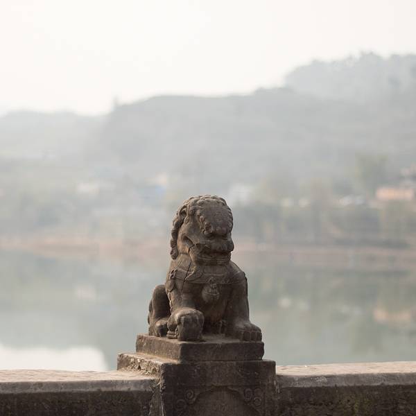 宝狮湖水库,没有什么东西,真的就是一个水库,大坝上全是石狮子的水库。这里的狮子普遍属于萌系石狮子~你吐舌头干嘛?还有你!卖萌的石狮子石狮子中的吉祥三宝吗?哦不,四宝各地的石狮子都遭遇了同样的破坏,这些萌狮子自认也是不会被放过的。你确定不是猴子派来逗比的狮子吗?作为石狮子的尊严呢!水库及远山我和发小儿开始了姜太公模式,这边儿钓鱼用的是七星漂儿,还真不太会玩儿。基情满满愿者上钩去问周围的当地人,这儿能钓上鱼来吗?回答说:能掉到就见到鬼喽!(自行脑补四川话)