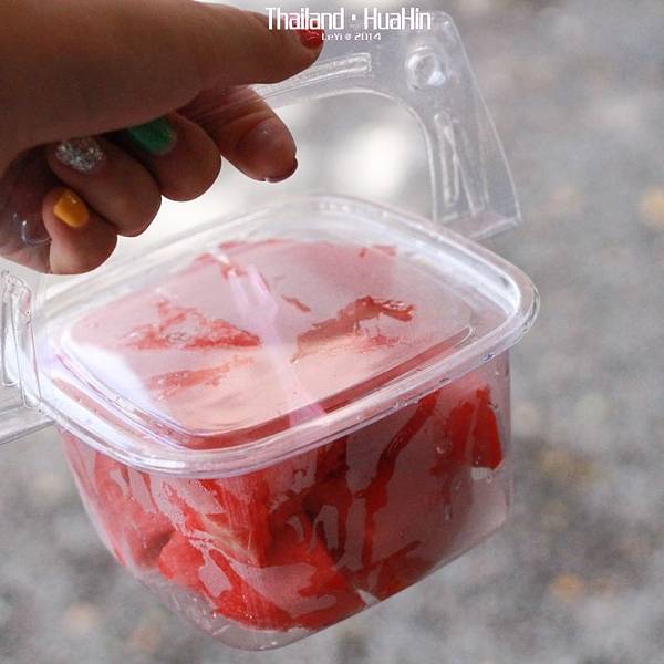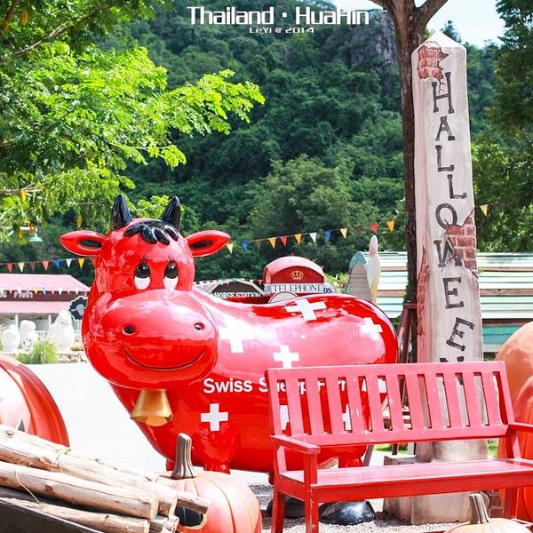 Swiss sheep farm距离圣托里尼公园不远,门票120b/人,开放时间10:00-19:00喂羊驼100b/人,胡萝卜20b一包,不买胡萝卜的话工作人员也会给你一些饲料的跟这么多蠢蠢的长腿怪待在同一个屋子里让我害怕的站在门口不敢动,工作人员拿过来的饲料我直接say no~~生怕它们靠近我,而且好臭的~~临近中午真的超热超晒,我们出来在门口买了水果,西瓜40b很多 又甜还是冰的。果断上车,出发华欣火车站
