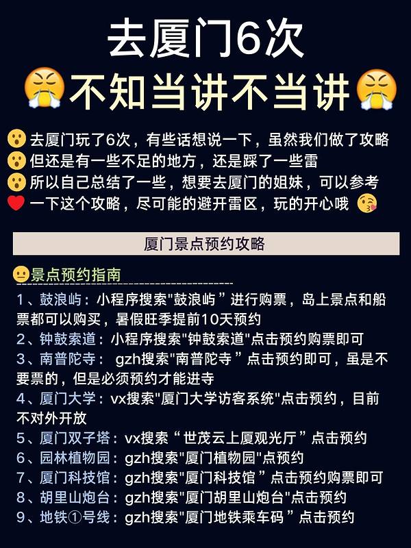 厦门作为一个旅游热门城市✈️,每到旅游旺季,都是人人人人人人人,作为一名去过厦门3次的过来人,我熬夜整理了厦门旅行的全攻略🎉快来码住!