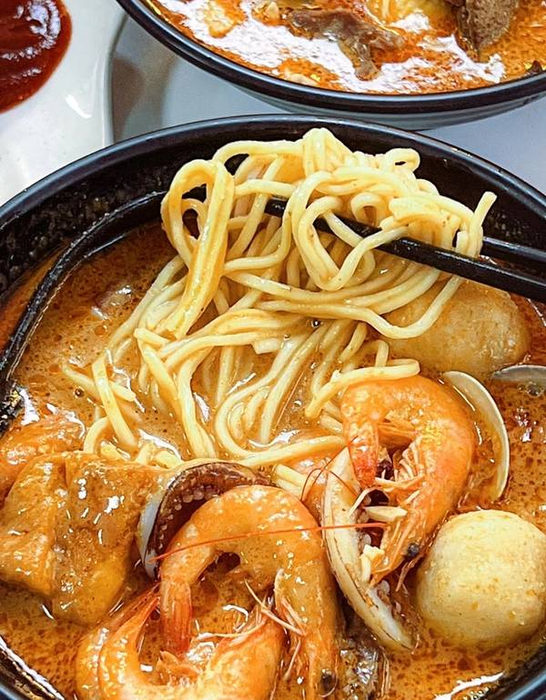 ✔沙茶面:以沙茶酱熬成的沙茶汤浓稠香郁,然后搭配闽南油面,配以大肠、豆制品等辅料,再淋上辣油