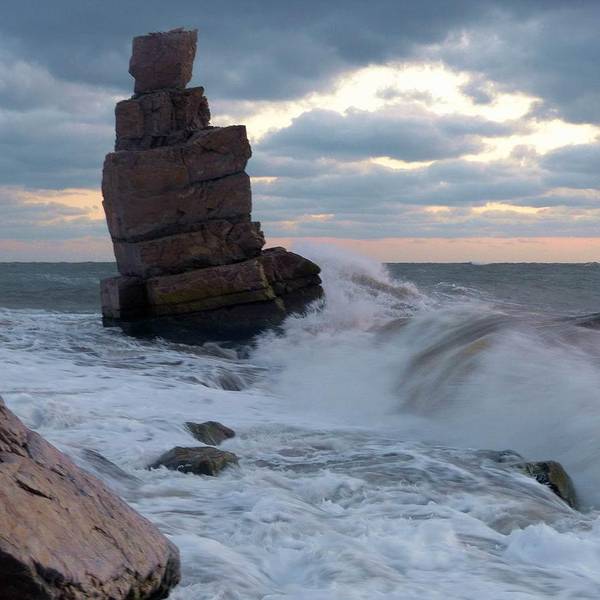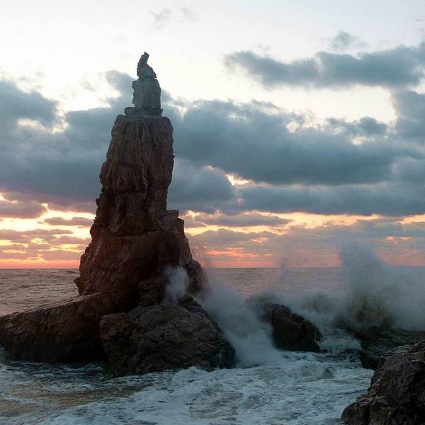在大连市旅顺口区双岛湾镇西湖嘴西台山崖下,两块巨大礁石并排屹立于海中。因多年的风吹日晒,礁石的棱角被风化,形如古代领兵打仗的将军,吸引了不少摄影爱好者和游客参观。