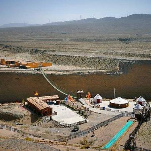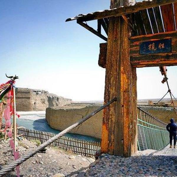 穿过岸这边的仿古兵营,横跨赖河大峡谷的百米长吊索木桥,抵达岸那边的讨赖客栈,游走在这里,感受着戈壁大漠的苍凉与寂寞。从这过跨河吊桥,就能看点讨赖河客栈,也是新龙门客栈的拍摄地。如今的嘉峪关已不再具...