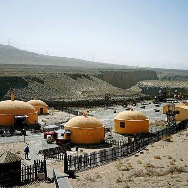 仿古兵营坐落于嘉峪关讨赖河大峡谷之侧,仿古兵营是新龙门客栈影片的其中一个外景基地。