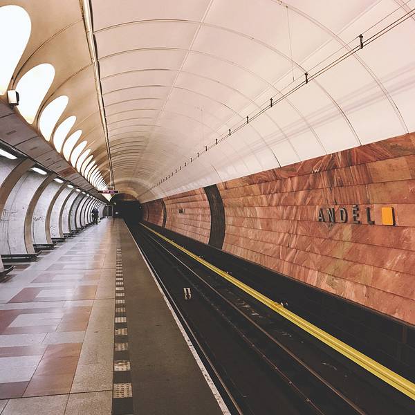 布拉格的机场很小,入境很顺利,工作人员连行程单酒店预订单等都没看就直接录指纹盖章放行了,然后行李也没用安检。在机场买了一张32捷克币的车票,90分钟内可以汽车加地铁的换乘,还有一种24捷克币30分钟内有效的车票,机场有人工售票柜台也有自助售票机。在机场直接坐119路公交车,大约30分钟便到达终点站,119路的终点站即地铁绿线的Dejvická站,布拉格地铁有A绿线、B黄线和C红线这三条线并不复杂。