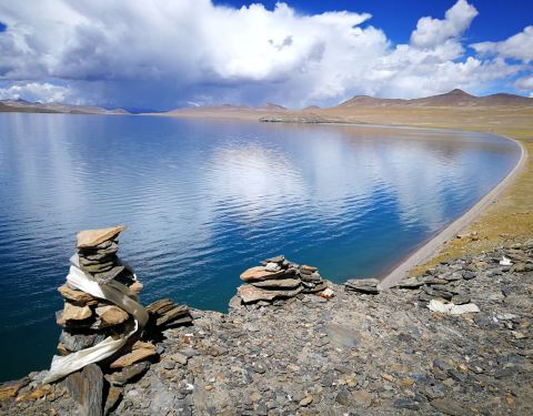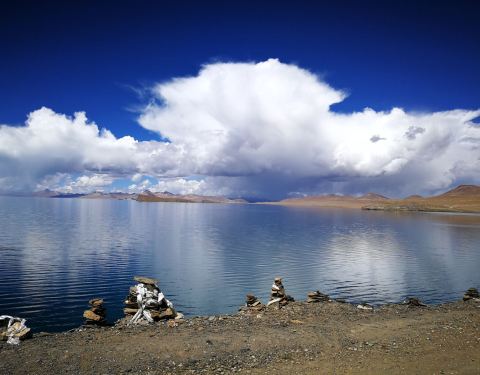 传说普莫雍错曾被莲花生大师所加持,从而有了神圣的气场。湖泊总是与雪山交相辉映羊卓雍错看完之后,我们来到了普莫雍措,普莫雍措是喜马拉雅山脉间的一个咸水湖,湖面海拔5010m,“普莫”为小姑娘的意思,“雍措”意为像碧玉一般的湖泊。普莫雍措被连绵的雪山所围拢,巍峨的“库拉岗日”神山就...羊卓雍错看完之后,我们来到了普莫雍措,普莫雍措是喜马拉雅山脉间的一个咸水湖,湖面海拔5010m,“普莫”为小姑娘的意思,“雍措”意为像碧玉一般的湖泊。普莫雍措被连绵的雪山所围拢,巍峨的“库拉岗日”神山就在湖旁。普莫雍措水湛蓝清透,湖中小岛犹如巨龟,静静地守护着这位“少女”。传说普莫雍错曾被莲花生大师所加持,从而有了神圣的气场。湖泊总是与雪山交相辉映。湛蓝的天空,漂浮的白云,波光粼粼的湖面簇拥着浪花拍打着岸边。 展开