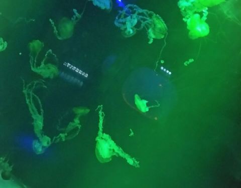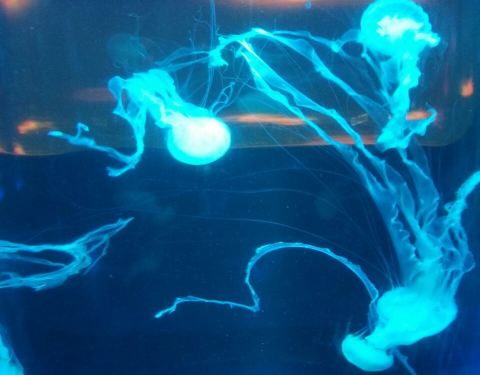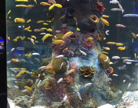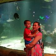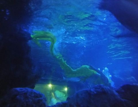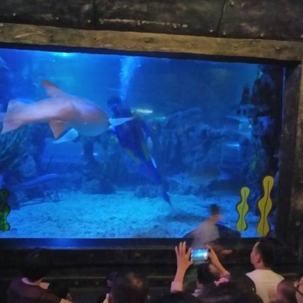 海洋馆是可以看见很多海中的动物,从没见过的鱼,我忘记有个鱼叫什么名字了,他有3亿多年的历史比恐龙还先出现。海洋馆可以看到里面的鲨鱼,还有人扮演的美人鱼。