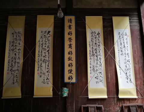 敬德堂的门楼砖雕非常精美,有鳌鱼、龙头、鱼尾、梅、兰、竹、菊等图案,都有吉祥美好的寓意敬德堂建于清初顺治年间,为H型民居,是宏村明末清初的民居代表。 敬德堂的门楼砖雕非常精美,有鳌鱼、龙头、鱼尾、梅、兰、竹、菊等图案,都有吉祥美好的寓意。 走过门楼,到达正厅,墙上挂了好几副书法作...敬德堂建于清初顺治年间,为H型民居,是宏村明末清初的民居代表。 敬德堂的门楼砖雕非常精美,有鳌鱼、龙头、鱼尾、梅、兰、竹、菊等图案,都有吉祥美好的寓意。 走过门楼,到达正厅,墙上挂了好几副书法作品。中间对联书:读书好营商好效好便好,创业难守成难知难不难。字字在理。 展开